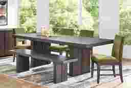 Angelica Brown 6 Pc Dining Room with Green Side Chairs and Bench
