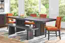 Angelica Brown 6 Pc Dining Room with Orange Side Chairs and Bench