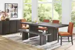 Angelica Brown 6 Pc Dining Room With Orange Side Chairs And Bench