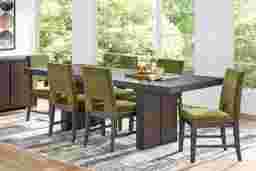 Angelica Brown 7 Pc Dining Room with Green Side Chairs