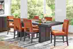 Angelica Brown 7 Pc Dining Room with Orange Side Chairs