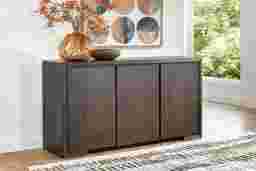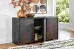 With its blend of concealed storage and timeless design, the Angelica server delivers both elegance and everyday practicality. Crafted in a warm brown finish over white oak veneers, this server features doors with a clean-lined façade. Opening to reveal adjustable shelves, this piece is perfect for stowing away dining essentials.