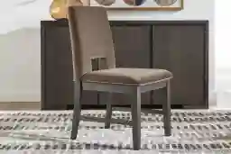 Both easy and elegant, laid-back charm gets an upgrade with the timeless style of the Angelica dining collection. Beautifully upholstered, this gray side chair features a signature knockout detail that brings a refined yet relaxed touch to mealtimes.