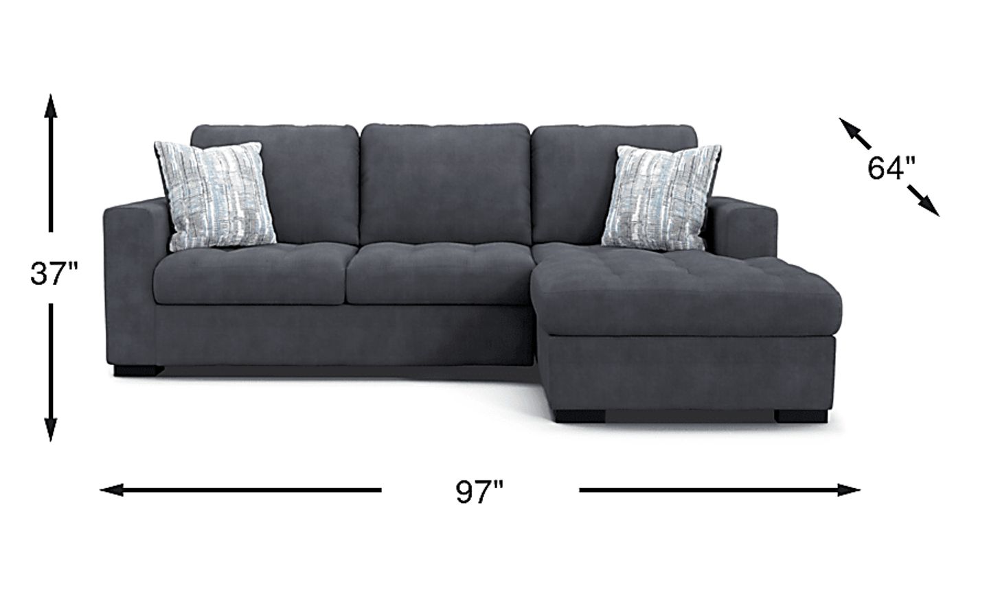 Raising the bar for functionality, the innovative design of the Angelino Heights sectional offers endless possibilities for seating and storage. This contemporary collection includes a fold-out queen size sleeper and a storage compartment in the chaise, making spontaneous overnight stays a breeze. Upholstered in blue textured woven fabric, this sectional boasts delicate tufting details on the seat cushions and exterior arms. Accent pillows, included, add a stylish touch. Upholstery: 100% Polyester.
