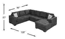 You no longer have to choose between functionality and style with the innovative design of the Angelino Heights sleeper sectional. Featuring seating for up to six adults, this versatile sectional includes a fold-out queen size sleeper and a storage compartment in the chaise. Upholstered in blue textured woven fabric, this contemporary sectional boasts delicate tufting details on the exterior arms and seat cushions. Included accent pillows add a stylish touch. Upholstery: 100% Polyester.