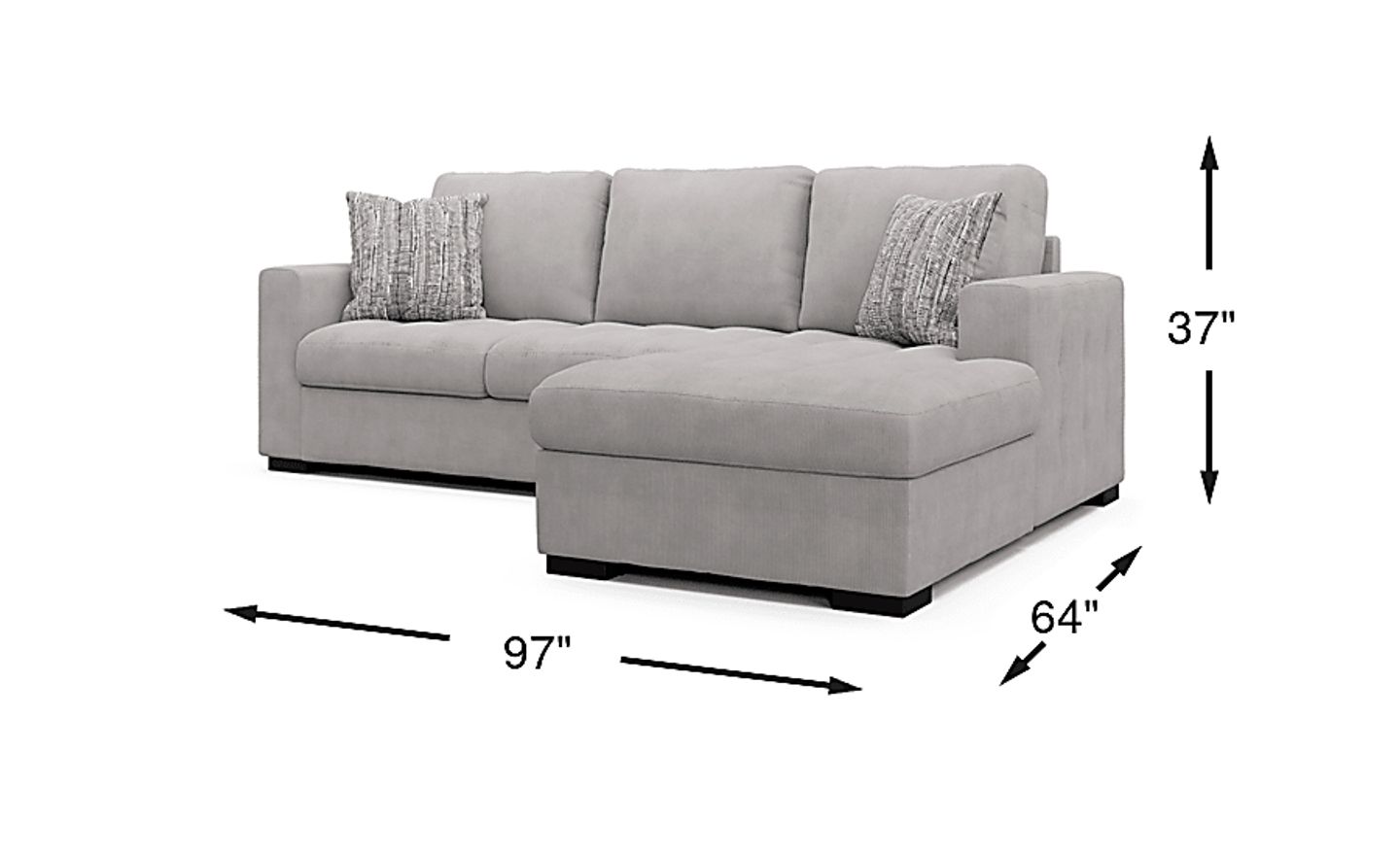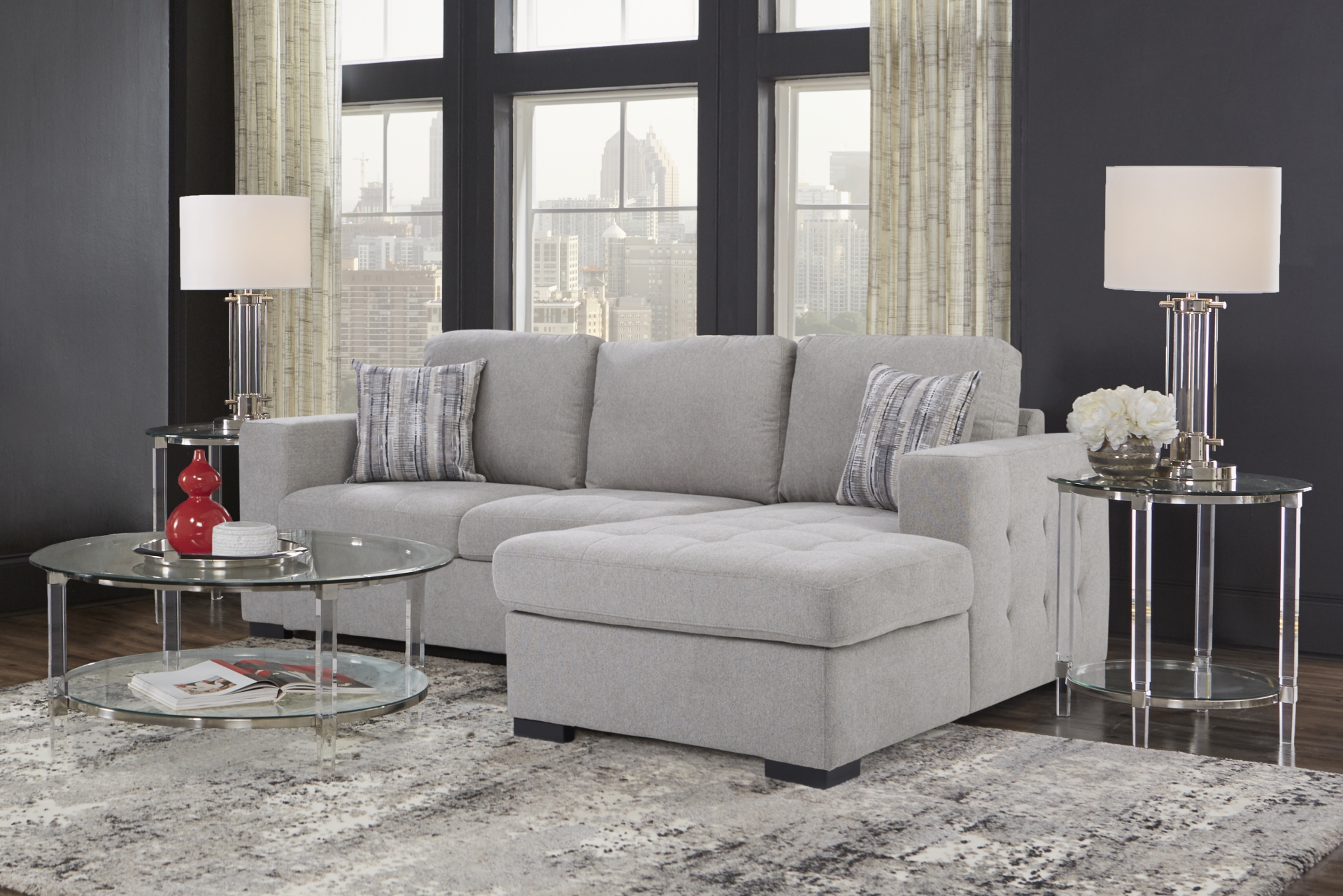 Raising the bar for functionality, the innovative design of the Angelino Heights sectional offers endless possibilities for seating and storage. This contemporary collection includes a fold-out queen size sleeper and a storage compartment in the chaise, making spontaneous overnight stays a breeze. Upholstered in gray textured woven fabric, this sectional boasts delicate tufting details on the seat cushions and exterior arms. Accent pillows, included, add a stylish touch. 100% Polyester
