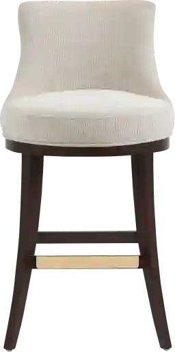 Elevate your everyday seating with the Angelphone natural barstool that blends tailored elegance and thoughtful comfort. Wrapped in richly textured chenille, this stool invites you in with a curved backrest, offering both style and support. The generously cushioned seat and the dark walnut wood frame grounds the piece with a timeless warmth. A gleaming gold footrest adds a refined touch, making this stool a perfect companion for your everyday.