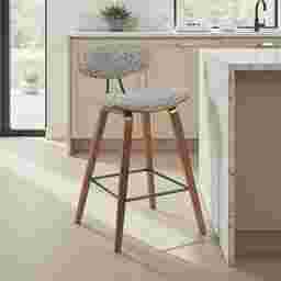 Whether drawn up to a sleek kitchen island or rounding out your home bar with a perfect perch, the Angelstones I brown counter height stool delivers versatile seating with timeless modern style. This mid-century-inspired stool features a gently curved back and padded seat, designed with high-density foam for lasting comfort during long meals or casual lounging. The medium-high back provides just the right amount of support while promoting healthy posture. Framed in durable layered hardwood and paired with a powder-coated steel footrest, each stool balances style and function with ease. With its clean lines and supportive construction, Angelstones is built to elevate your space and built to last. Customer assembly is required.
