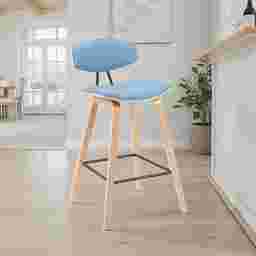 Whether drawn up to a sleek kitchen island or rounding out your home bar with a perfect perch, the Angelstones III blue barstool delivers versatile seating with timeless modern style. This mid-century-inspired stool features a gently curved back and padded seat, designed with high-density foam for lasting comfort during long meals or casual lounging. The medium-high back provides just the right amount of support while promoting healthy posture. Framed in durable layered hardwood and paired with a powder-coated steel footrest, each stool balances style and function with ease. With its clean lines and supportive construction, Angelstones is built to elevate your space and built to last. Customer assembly is required.