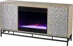 Bring a cozy glow to your living space with this Angevine I color changing fireplace. Spacious cabinets tuck away movies and books, while a stamped door design adds modern texture to your home. Color changing flames reflect off the shimmering faux crystal fill and life like embers, surrounding family and friends in warm ambiance, with or without heat. Gather around a cozy centerpiece when you add this media fireplace to your game room or open concept floorplan. Customer assembly is required.