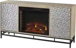 Bring a cozy glow to your living space with this Angevine II electric fireplace console. Spacious cabinets tuck away movies and books, while a stamped door design adds modern texture to your home. Flickering LED flames and lifelike embers create a realistic fireplace feel, surrounding family and friends in warm ambiance, with or without heat. Gather around a cozy centerpiecewhen you add this media fireplace to your game room or open concept floorplan. Customer assembly is required.