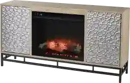 Bring a cozy glow to your living space with this Angevine IV electric fireplace console. Spacious cabinets tuck away movies and books, while a stamped door design adds modern texture to your home. Flickering LED flames and lifelike embers create a realistic fireplace feel, surrounding family and friends in warm ambiance, with or without heat. Gather around a cozy centerpiece when you add this media fireplace to your game room or open concept floorplan. Customer assembly is required.