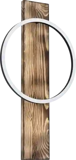 The Animas Place sconce has a rustic yet refined appearance. This sconce features a brushed pine wood finish. Its integrated LED light source emanates from the single black circular ring creating a look thats both rustic and modern. Professional installation by an electrician is recommended.