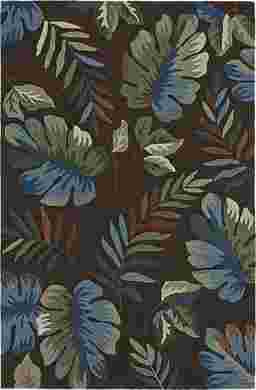 Bring your love for the tropics by adding the unique Anise rug. Featuring a tropical leaves pattern against a chocolate background. Hand tufted with polyacrylic. To clean, vacuum regularly. Spot clean with mild soap and water.