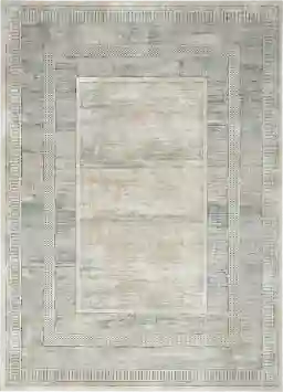 Experience the epitome of contemporary elegance with the Anlyth rug. Infused with art deco inspiration, this rug showcases abstract and geometric rug patterns adorned with understated raised accents and a touch of captivating shimmer, ensuring a brilliant addition to your living room, dining room, or bedroom decor. Crafted to meet the practical demands of busy households with children and pets, it is meticulously made from softly textured polyester yarns, promising easy cleaning without compromising on style. Elevate your interior decor with this geometric rug, creating an ultra-glam foundation. Its abstract center design is beautifully encircled by a series of wide and narrow borders in a serene ivory and gray palette, embellished with multicolored accents that come to life through subtle texture variations. The finishing touch is a brilliant shimmer that adds layers of visual intrigue, accentuating the contemporary charm of this rug, thoughtfully designed from softly textured polyest