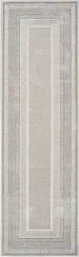 The Anlyth Area Rug Collection embodies contemporary style. Art Deco inspired, abstract, and geometric rug patterns are finished with subtly raised accents and a glamorous shimmer that adds a brilliant look to your living room, dining room, or bedroom dcor. Made from softly textured polyester yarns for easy cleaning, Anlyth is ideal for use in busy households with kids and pets. Create an ultra-glam foundation for your dcor with this geometric rug from the Anlyth Collection. It features an abstract center design surrounded by a series of wide and narrow borders in silver tones that are enhanced with subtly textured accents. Finished with a brilliant shimmer that adds visual intrigue, this contemporary rug is made from softly textured polyester.
