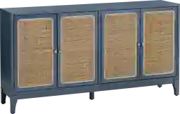 Elevate your storage and style with the Annadaley blue sideboard. Crafted from bayur wood and natural pandan, it features a sleek blue painted finish with a smooth interior. The four woven front doors are accented by antique brass knobs, adding texture and elegance. Two spacious shelves and cord management holes provide practical functionality, while floor levelers ensure stability. Perfect as a media center or sideboard, this piece combines beauty and versatility. Customer assembly is required.
