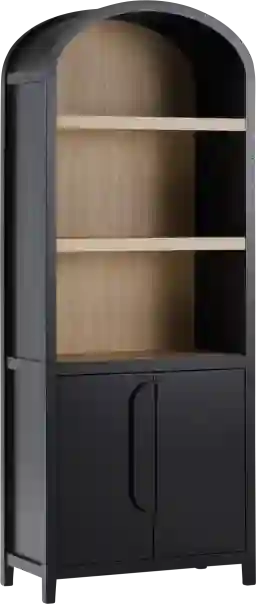 You've seen arched bookcases all over social media, and now you can bring home the trend without breaking the bank. This modern Annbick III arched bookcase and cabinet offers practical storage and statement-making style, all in one beautiful piece. Three roomy shelves give you a place to showcase your favorite books and decor, while the lower closed storage allows you to conceal your less polished belongings. The oversized, curved door handles make a subtle statement that elevates the design, perfectly complimenting the upper arch of the cabinet. Made with durable and long-lasting MDF, this tall bookcase with glass doors brings just one question to mind will you show it off in the dining room, bedroom, or home office. Customer assembly is required.