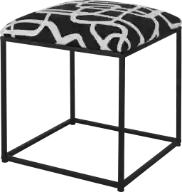 Sophisticated with a touch of whimsy, this accent bench features a cushioned seat upholstered in a contemporary black and white embroidered fabric, atop a matte black iron base. Doubles as added seating or a footrest. Customer assembly is required.