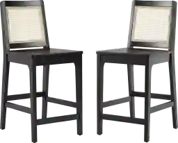 If you're a fan of transitional or boho design, this set of two Annerly solid wood counter stools is a match made in heaven. The natural rattan back panel and black painted wood add a dark but unique textural touch to any room. The solid rubberwood base is durable enough to stand up to everyday use and provides a welcome contrast to the rattan detail. Quick, easy assembly means you can start enjoying your stools right away, and the nylon sliders protect your flooring so you can spend less time worrying and more time making memories at home. Customer assembly is required.