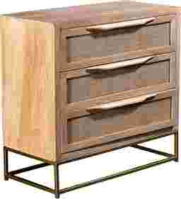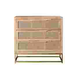 The Antanna accent cabinet is perfect for any coastal style inspired interior. The three drawer accent is finished in natural wood tone and sits on brass finish metal frame. Customer assembly is required.