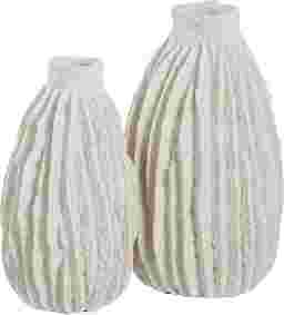 This Ansell set of two vases features a stunning textured ivory finish that adds depth and sophistication to any decor. Each vase showcases unique ridges that catch the light beautifully, making them perfect for displaying fresh flowers or as standalone decorative pieces.