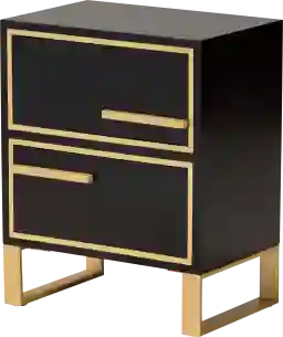 Enrich the character of your bedroom with the luxurious efficacy of the Anston black nightstand. This stunning piece consists of a solid wood frame accentuated with sleek visual texture. Two drawers offer space to organize nighttime essentials while elongated drawer handles create a striking display of crisp geometry. The Anston features rectangular metal legs for excellent stability and support in a sleek design. Embracing the glamour of modern minimalism, the Anston is sure to boost any bedroom layout. Customer assembly is required.