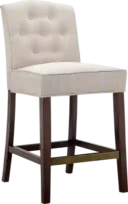 This stool is upholstered in a high-quality blend of linen and polyester. While the linen provides a sophisticated, natural texture, the polyester adds essential durability and resilience, making it well-suited for the frequent use typical of a kitchen. Based on our material expertise, we recommend regular dusting with a soft cloth and addressing any minor spots with mild soap and water to keep the beige fabric looking its best.