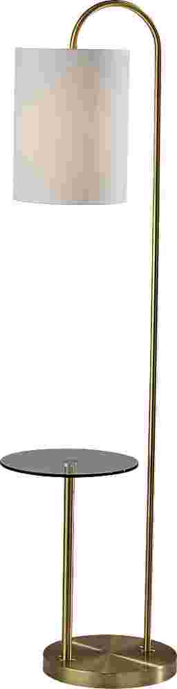 Enhance your living space with the versatile Anthon Hollow Brass Floor Lamp. Featuring an antique brass base, this lamp exudes timeless elegance and provides sturdy support. The white textured fabric drum shade diffuses light beautifully, creating a warm and inviting atmosphere. This floor lamp also includes built-in shelves, offering both lighting and practical storage solutions. Perfect for living rooms, bedrooms, or offices, this floor lamp is a stylish and functional addition to any home. Partial assembly may be required.