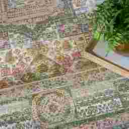 With its classic geometric design and richly balanced colors, this vintage-style Antiquity rug adds depth and character to your home. The intricate traditional pattern is enhanced by a silky sheen that beautifully reflects and captures changes in natural light. Subtly raised yarns add an extra dimension for added depth. Finished with short fringe edges in a low-profile construction that feels delightfully soft to the touch. 100% polyester.
