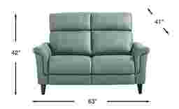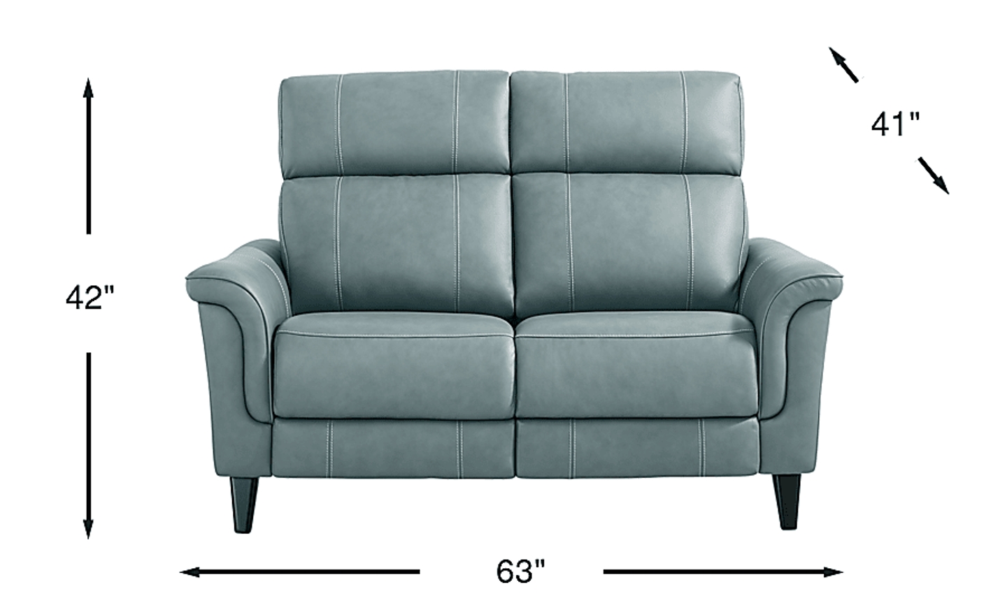 Serene relaxation with quiet elegance is reimagined in the Antonella collection from Cindy Crawford Home, where sculptural form, refined details, and luxurious comfort come together. Exquisitely modern, this loveseat is upholstered in blue top grain leather where the body touches and features a clean, sleek frame. Deep channeled back cushions and subtly angled headrests offer supportive comfort, while slim, padded roll arms and tapered wood legs in a brown finish give the silhouette a sculptural, elevated look. Upholstery: Top grain leather where the body touches with vinyl sides and backs.