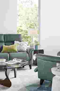 Includes:blue dual power reclining sofa • blue dual power reclining loveseat • blonde dual power recliner • Cocktail Table + 2 End Tables