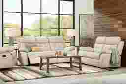 The Antonin Beige Leather Reclining Sofa is equipped with a non-power reclining mechanism. This allows you to manually adjust your seating position for personalized comfort, providing a smooth transition to your preferred recline.