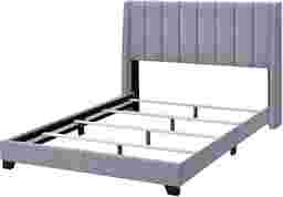Bring the style and feeling of a modern luxury hotel into your bedroom with this upholstered bed. It features angled wings and plush vertical channeling in the headboard coupled with a sleek low profile bed frame. The soft, dove gray velvet fabric offers a fresh take on the classic upholstered bed. Made with solid manufactured wood and durable fabric, this bed can be set in 60 minutes or less. This vertically channeled, shelter style upholstered bed will definitely take your bedroom to the next level. Customer assembly is required.