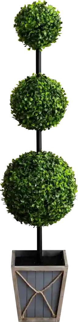 To achieve a lush, realistic appearance, we recommend "fluffing" the branches once the item is removed from its packaging. This topiary is designed with a verdant, triple-ball boxwood style that can be gently adjusted to create a full, symmetrical shape. Placing it in its included decorative planter ensures it is ready for immediate display as a maintenance-free, year-round accent.