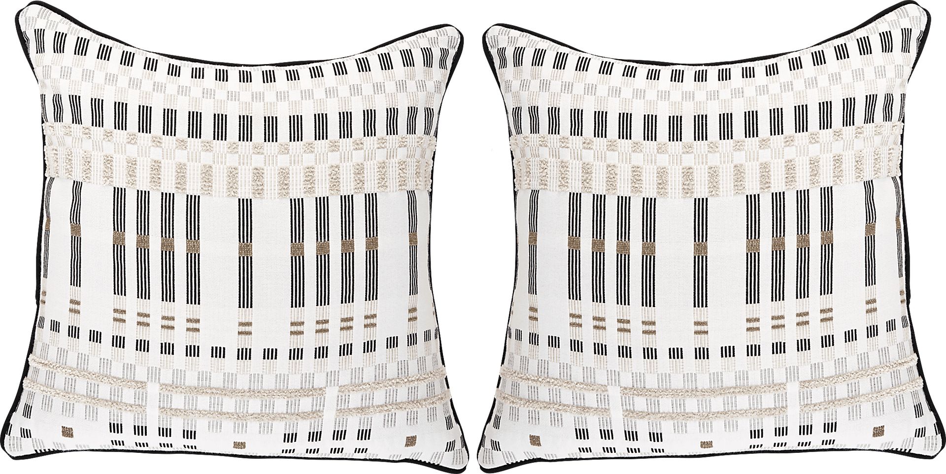 With a bold look and modern spirit, the Approach Classic pillow proves that big style really can come in small packages. Crisp black lines across a field of white are interwoven with details in silvery grays and russet browns. Pops of textured fabric lend this set of two accent pillows a handsome extra dimension.