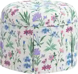 Add a charming hand upholstered skirted ottoman to deliver a bit more flair to your living area or private space. The wonderfully versatile Aquaflor ottoman makes sense for almost any area of the home, and each one is made to order in Illinois and manufactured in Illinois. The exquisite Floral fabric is carefully arranged and serves as a marvelous decorative detail, while the solid construction and circular shape provide a foundation for longevity. Customer assembly is required. This piece is made to order and may take up to 6 weeks to deliver.
