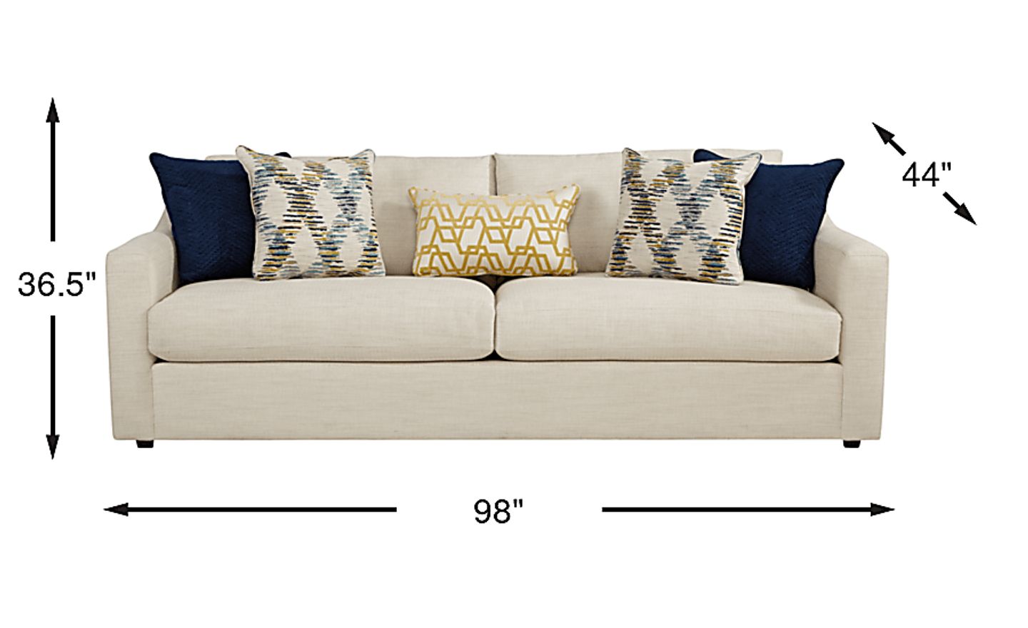 The ultrachic Arabela sleeper sofa offers clean, contemporary style for your gathering area. Upholstered in soft chenille fabric, this piece features an ivory color that complements any room. Sloping track arms lend a modern, streamlined look. Adding visual interest, included accent pillows are rendered in solid navy, a colorful diamond print and a gold geometric pattern. The queen-sized Sealy Royale mattress pulls out to provide a convenient resting place for overnight guests. Reversible seat and back cushions extend the lifetime of your sleeper. Upholstery: 100% Polyester