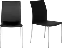 The Aracobra black dining chair, set of 2 features a beautiful leatherette construction and a polished steel base and frame. Upgrade the look and feel of any room with these stylish chairs.