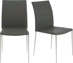 The Aracobra gray dining chair, set of 2 features a beautiful leatherette construction and a polished steel base and frame. Upgrade the look and feel of any room with these stylish chairs.