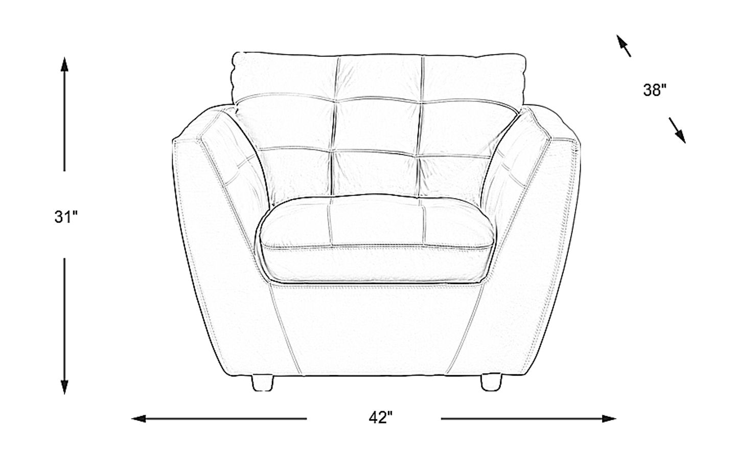 Make an impact on your living space with the modern Aragon chair. This chic seat is upholstered in sumptuous top grain leather where the body touches. Tufting detail enhances the platinum-colored seat and back cushions as well as the inside flared arms. Contemporary lines create a sophisticated sense of style. Top grain leather where the body touches and polyurethane fabric sides and backs.
