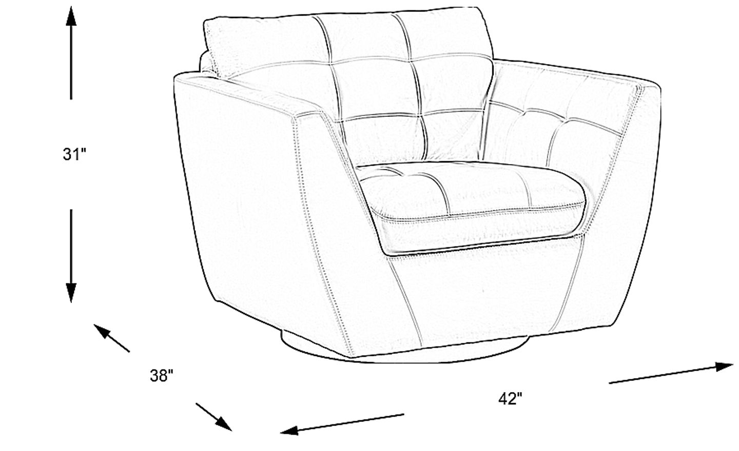 Make an impact on your living space with the modern Aragon swivel chair. This chic seat is upholstered in sumptuous top grain leather where the body touches. Tufting detail enhances the attached seat and back cushions as well as the inside of the flared arms. Contemporary lines create a sophisticated sense of style. Top grain leather where the body touches and polyurethane fabric sides and backs.