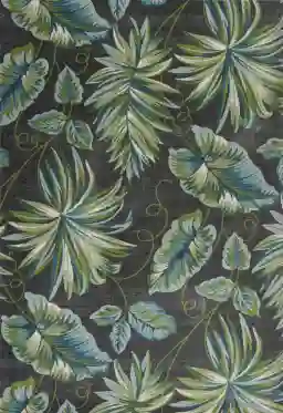 Incorporate the tropical feeling to your interior space by adding the unique Aralia Grove rug. Featuring a tropical plant design against a dark background. Machine-woven with 100% polypropelene. Vacuum regularly & spot clean stains. Professional cleaning recommended periodically.