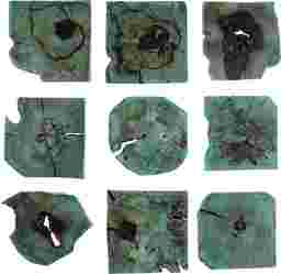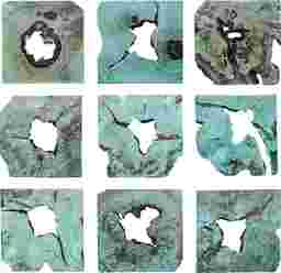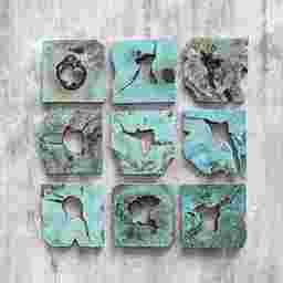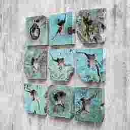 The Aramis set of nine wood wall pieces is crafted from 100% natural tamarind wood in a blue green finish. Because each is individually handcrafted, natural variation will occur from piece to piece.