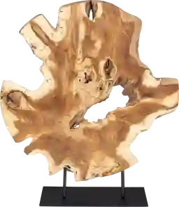 This striking Aramis sculpture, crafted from 100% natural teak wood, showcases a captivating natural finish that beautifully enhances its organic texture. Set on a sleek black base, it creates a stunning contrast that elevates any decor. Perfect as a centerpiece or accent piece, this unique artwork brings a touch of nature-inspired elegance to your space. Because each is individually handcrafted, natural variation will occur from piece to piece.