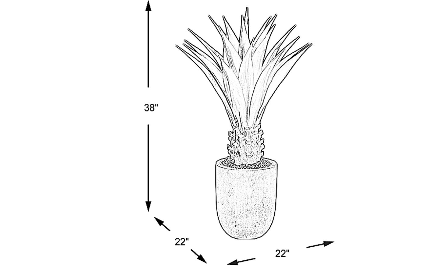 The Arandas artificial jumbo agave plant adds year-round color to your favorite spaces. A take on the plants commonly found in Mexico and the Caribbean, this piece stands at 38 inches in height and the leaves are UV treated to protect against cracking and fading, allowing for outdoor exposure. A gray planter completes the look.