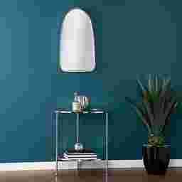 Small spaces will never be short on style with this unique Arapahoe wall mirror. Chrome finishing surrounds an arched mirror. Versatile in design and function, this mirror can hang in any direction. Open up space in your living room, entryway, or powder room with this multipurpose mirror.