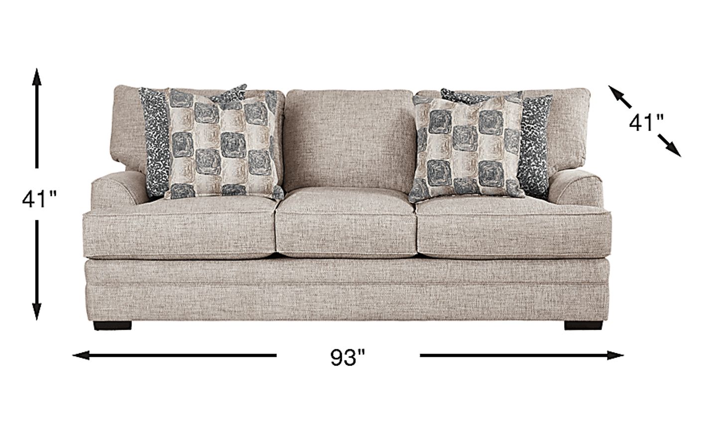 With an overall width of 93 inches, this sofa provides generous three-person seating and a spacious queen mattress. When planning your room layout, especially in a guest room or apartment, you should account for the 41-inch depth of the sofa plus the additional extension of the pull-out mechanism. We recommend measuring for a total clearance of at least 90-95 inches from the back wall to ensure there is still walking space when the bed is fully deployed.