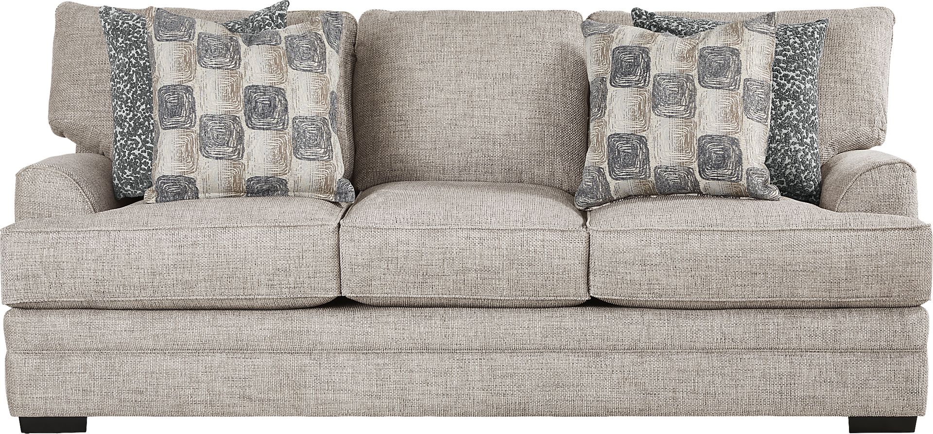 The hills are alive with the sound of tranquility when you introduce the ultra-stylish Arbour Hill collection to your home. Upholstered with soft chenille fabric, this piece has fully reversible seat cushions with gel-blended foam. Throw pillows feature an eclectic pattern in a neutral palette that pops when combined with the sofa's gray fabric. Made of solid wood, the legs are crafted in a beautiful brown finish for a perfect final touch. Upholstery: 100% Polyester.