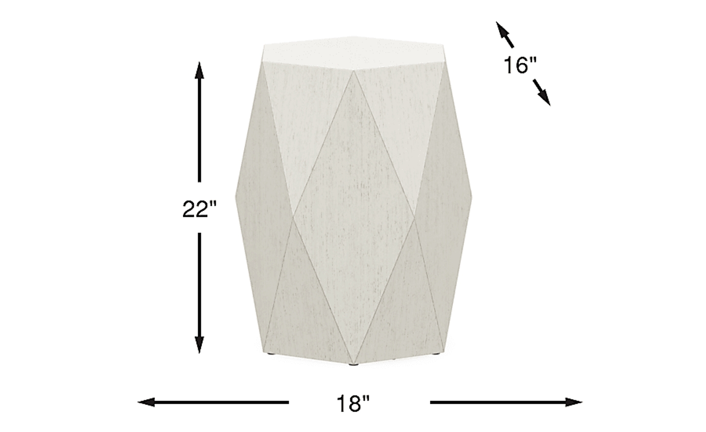 With a bold expression of modern artistry, the Arcadia collection commands attention as its dramatic presence, sculptural form and striking design anchors the room with an undeniable impact. Crafted with a multifaceted silhouette, this end table's slender profile design features angular, faceted panels that catch the light and create a dynamic sense of depth. Finished in a vibrant white, this clean and polished look blends seamlessly into contemporary settings while standing out as a true statement piece.